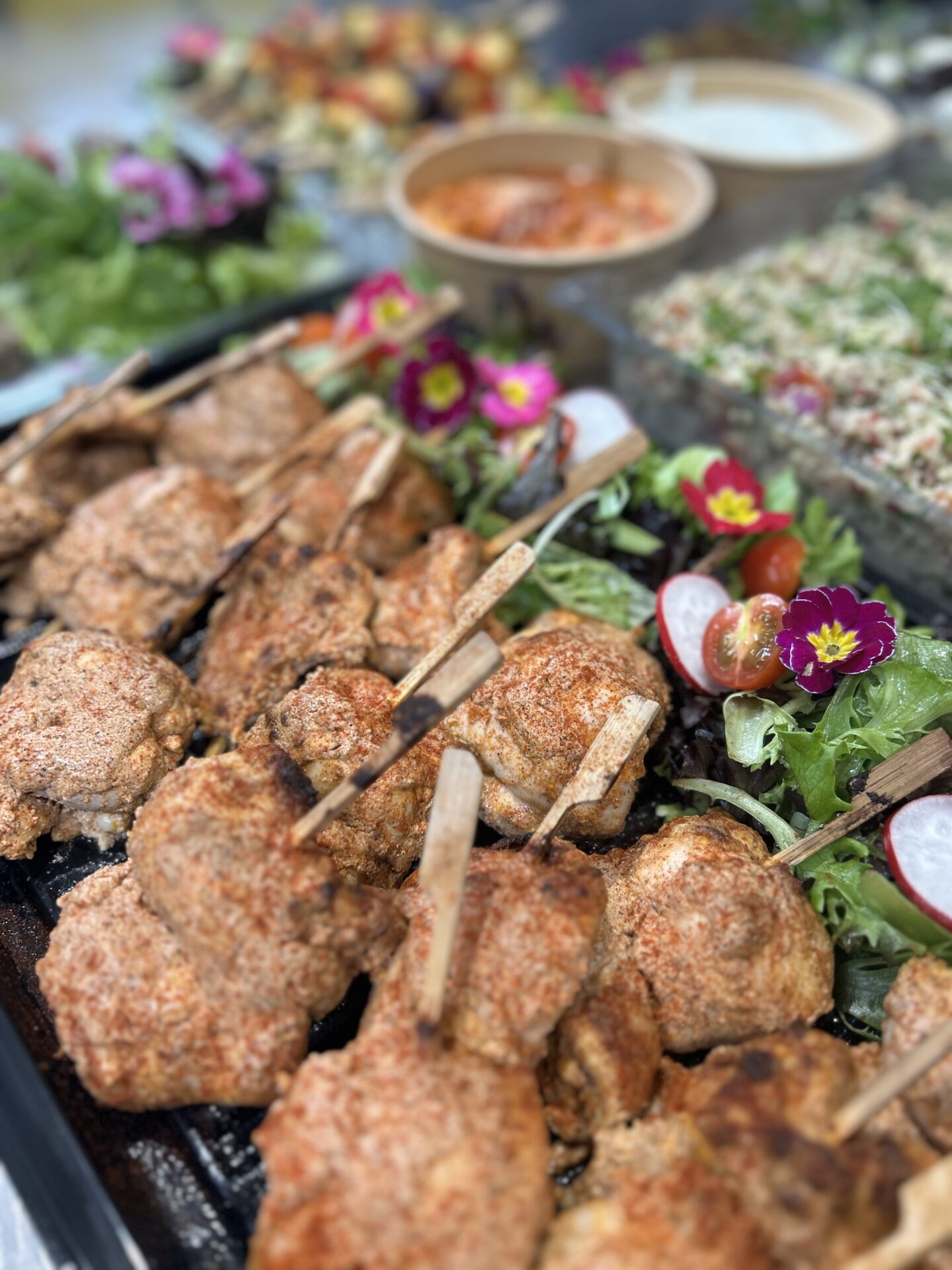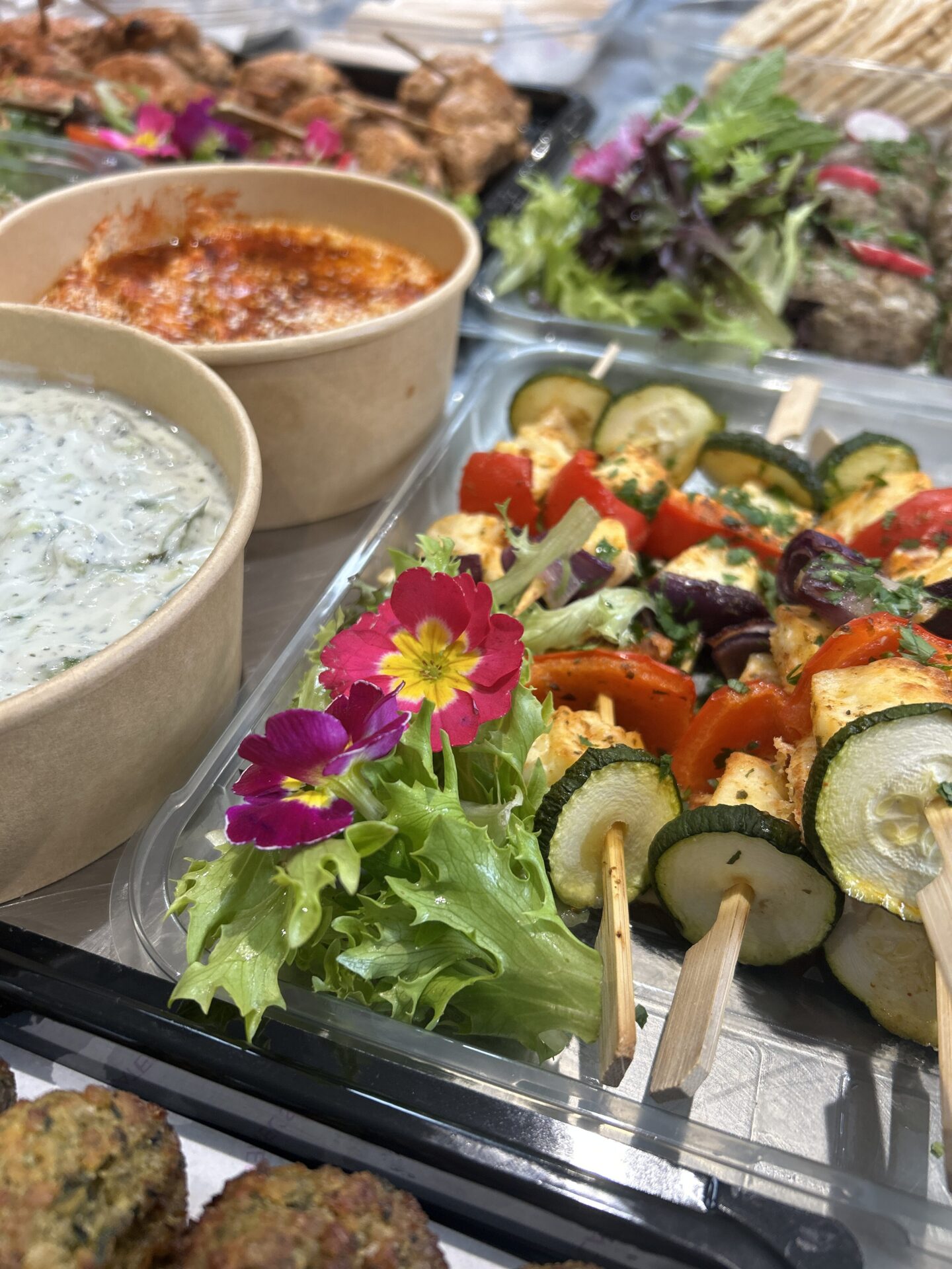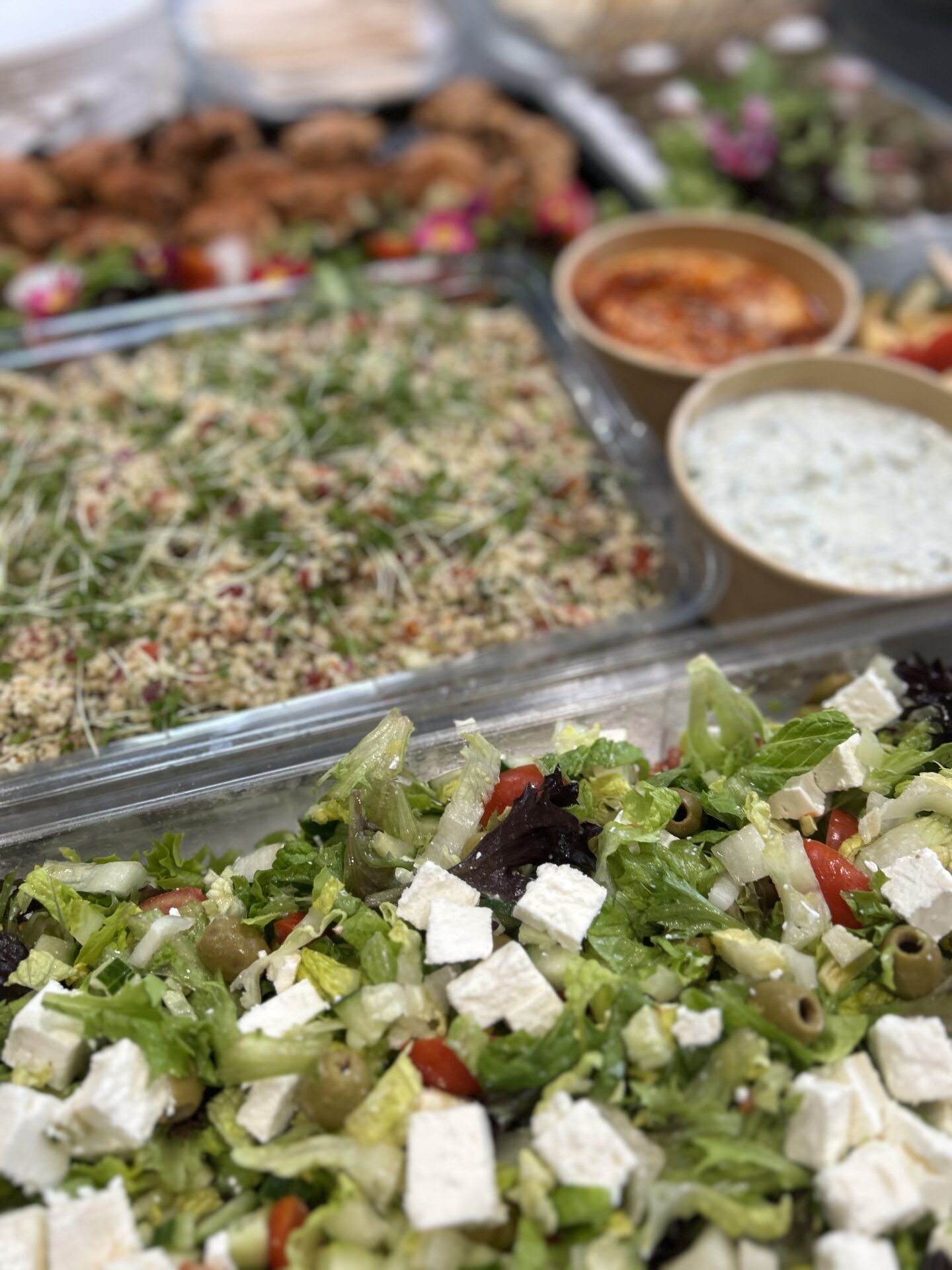 For this office lunch, the team ordered our Mediterranean Cold Fork Buffet for 20 people—a fresh and flavorful spread perfect for sharing. The menu included Turkish chicken kebabs, minted lamb koftas, roasted vegetable and halloumi skewers, creamy hummus, refreshing tzatziki, herby tabbouleh, Greek salad, chickpea falafels, soft flatbreads, and our signature house salad dressing. To finish on a sweet note, they selected two puddings: zesty lemon tarts and indulgent berry pavlovas, served with a bottle of cream. A vibrant and satisfying feast that brought a real taste of the Mediterranean to their lunch table!